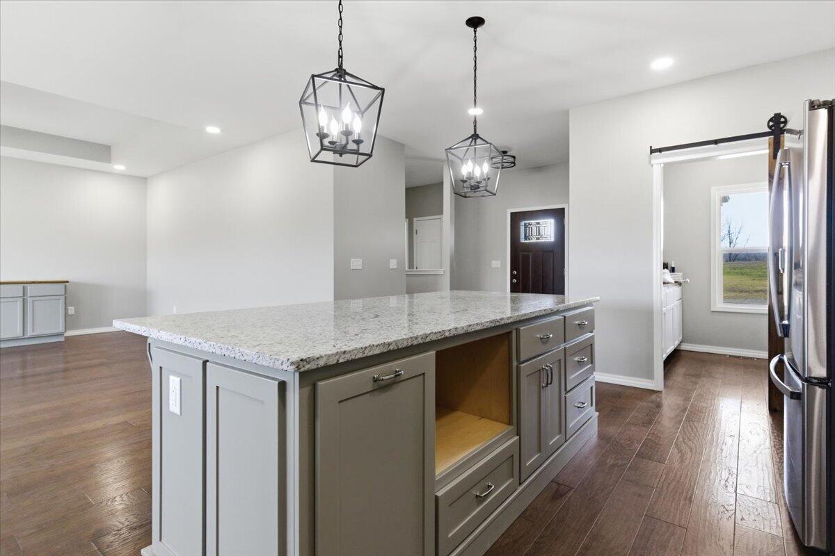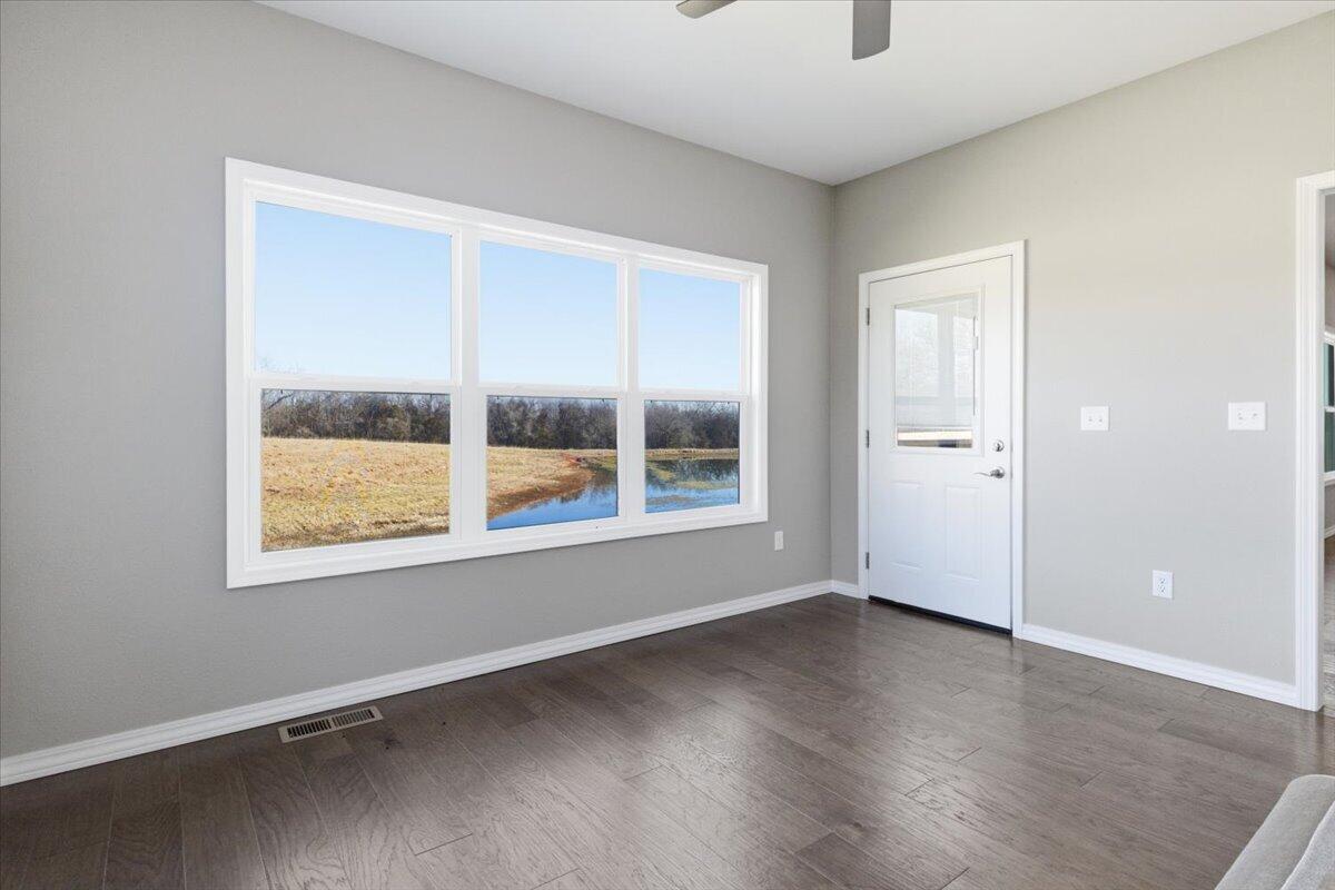 Exceptional 5-bedroom, 3 full bath home situated on 10 breathtaking acres with a large stocked pond and abundant wildlife. This stunning property offers the perfect blend of luxury, privacy, and convenience, just 30 minutes to Springfield and 15 minutes to Buffalo.Inside, you'll find beautiful flooring throughout, exceptional granite countertops, and stainless steel appliances that elevate the kitchen's style and functionality. Expansive windows fill the home with natural light and showcase the surrounding landscape from nearly every angle. The heated and cooled sunroom provides a peaceful year-round retreat to enjoy morning coffee or unwind while overlooking the property.The spacious master suite is a true retreat, featuring a large walk-in shower and an oversized walk-in closet.The finished walk-out basement offers incredible additional living space, complete with two bedrooms, a full bath, a safe room, second laundry area, and a convenient kitchenette, ideal for guests, multigenerational living, or entertaining. Heated floors in the basement not only provide exceptional comfort but also help heat the entire home efficiently. The heated and cooled garage space includes a dedicated pet wash station for added convenience.Outdoors, enjoy peaceful views of the large stocked pond, a gated entrance for privacy, and plenty of room to explore, fish, watch wildlife, or simply relax and take in the natural beauty.This one-of-a-kind property offers luxury, functionality, and serene country living--all within easy reach of town amenities.